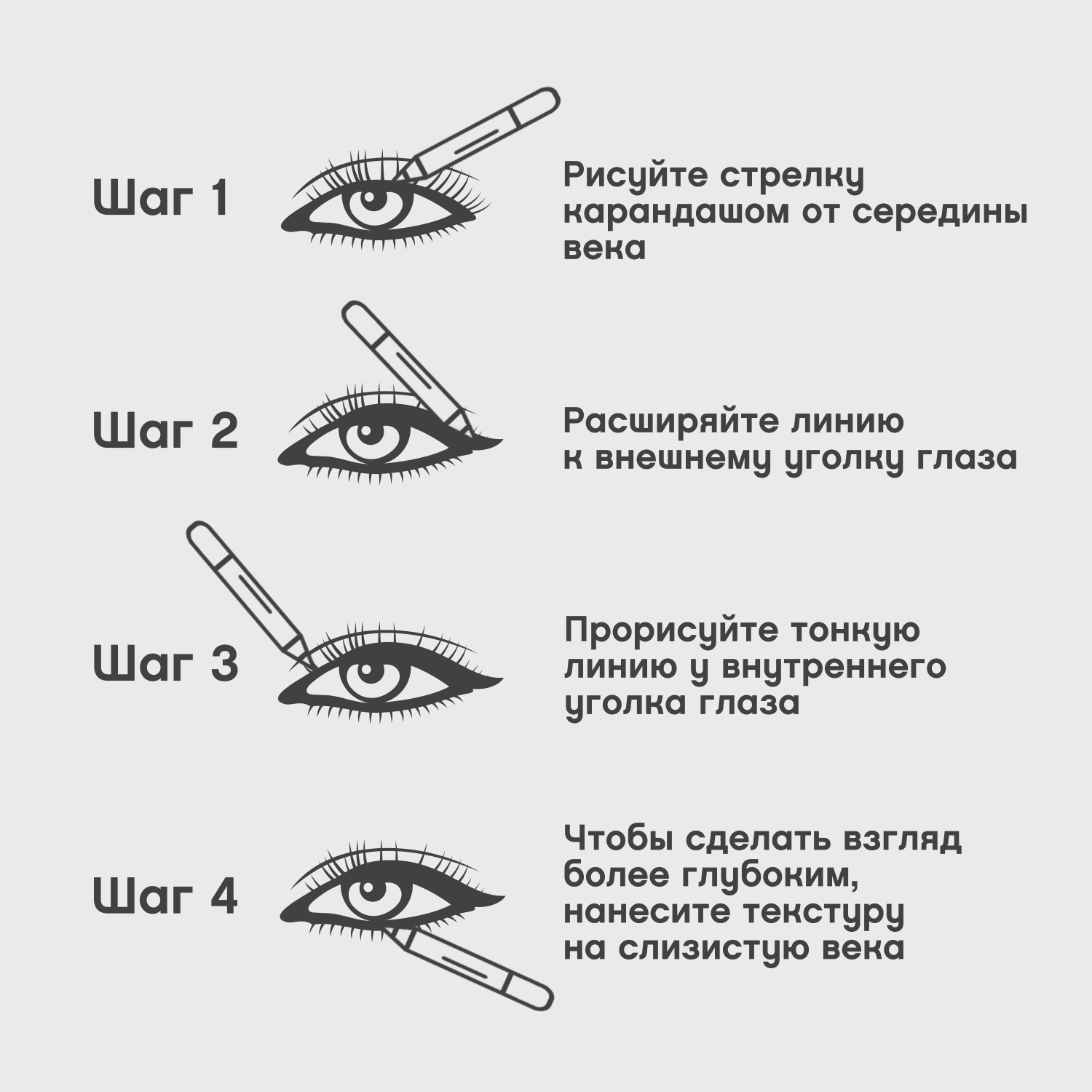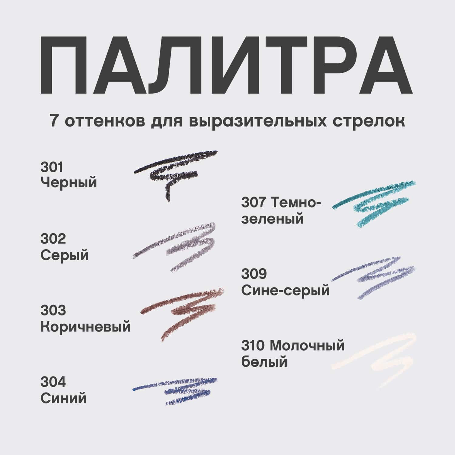 Liner Flirteur — линейка карандашей для глаз в семи универсальных оттенках. Ими можно нарисовать аккуратные стрелки, сделать smoky eyes, расставить легкие акценты или создать подложку для теней.