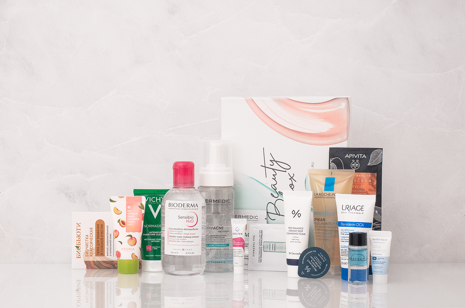 Очищение-важнейший этап на пути к здоровой и красивой коже, без которого дальнейшие составляющие ежедневной бьюти-рутины не дадут оптимального результата. Однако подобрать подходящее очищающее средство не всегда удается с первого раза. Часто мы перебираем одну баночку за другой в поиске той самой идеальной. Если вы еще не нашли свое средство или вам просто хочется чего-то новенького, можно обратить внимание на наш новый ФармаБьютиБокс Шаг 1 Очищение, в котором мы собрали 15 разнообразных средств для кожи лица и тела. Давайте вместе его откроем и познакомимся с наполнением.